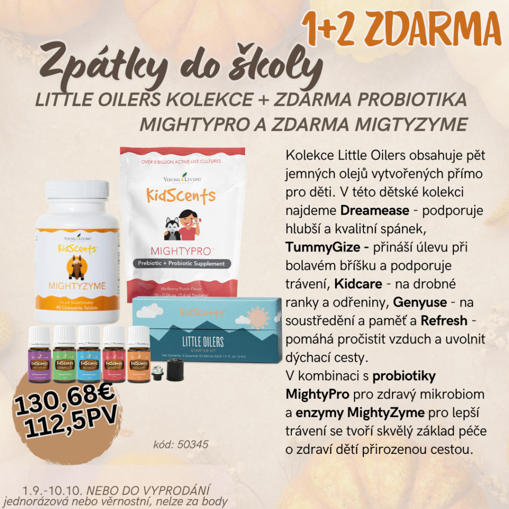 Pokud máš děti, tak se určitě podívej na tuto nabídku 1+2, protože s tímto balíčkem zvládneš zažívání dětí včetně střevních chřipek, imunitu, spánek, soustředění i různá zranění. Prostě vše pro děti v jednom. Je toho ale více, mnoho nabídek z katalogu je stále dostupných, tohle je jen pár mých favoritů. Na celý katalog se můžeš podívat zde. Najdeš tam produkty do domácnosti, doplňky stravy a i slevu na mnohé oleje.