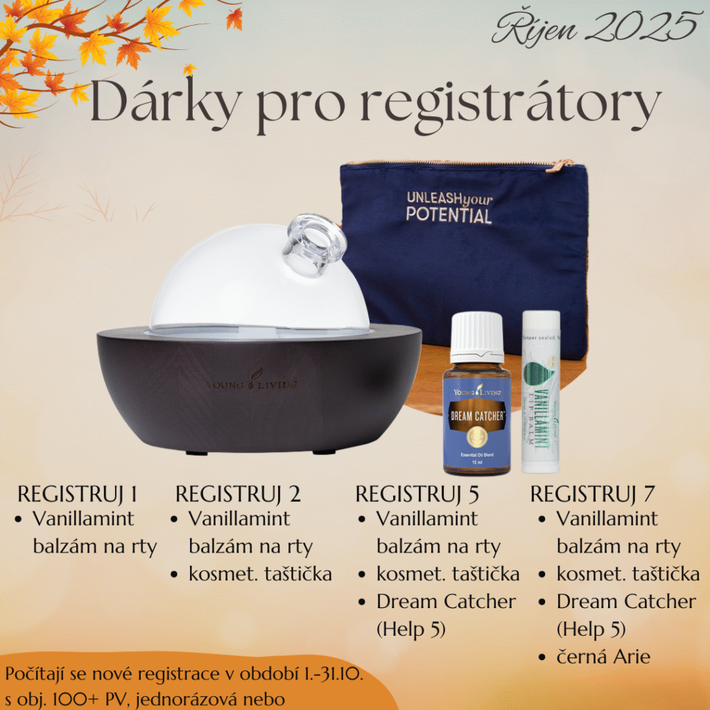 A pro registrátory to je úplná bomba! Protože můžeš získat černou Arii, která je k dispozici jinak jen v USA! Pokud oleje miluješ, můžeš svou zkušenost sdílet s kamarádkami, rodinou a známými a nejen, že v případě startovací sady získáš bonus 42€, ale tento měsíc můžeš získat navíc dárky v hodnotě více než 10.000 Kč včetně difuzéru, který není v Evropě k dostání jako dárek.