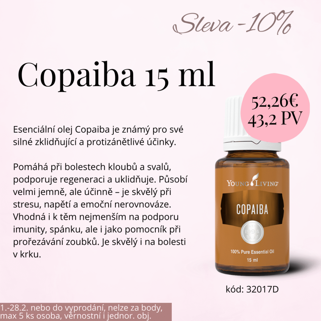 nachlazení, jelikož Copaiba je skvělá na bolest v krku a hlasivky a RC