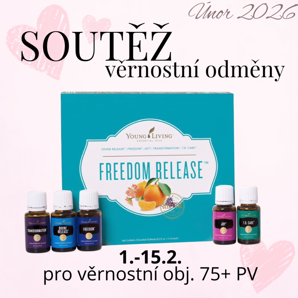 A já mám pro tebe něco navíc a to soutěž, kdy můžeš vyhrát velmi hodnotnou sadu Freedom Release, která je dostupná pouze v USA. Zapojit se může do 15.2. každý s objednávkou nad 75 PV, když nakoupí přes věrnostní odměny. Soutěž běží v naší FB skupině Tajemství esencí.